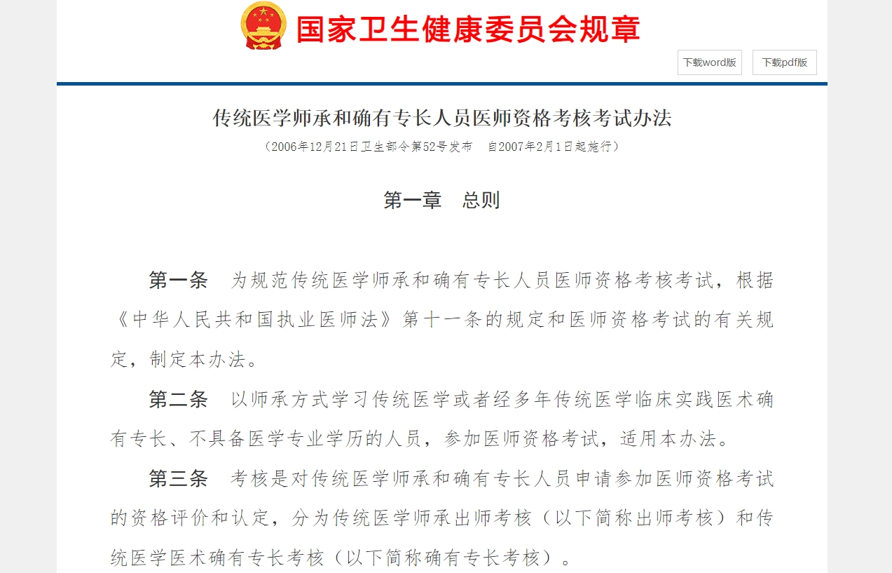 2007年国家卫生部第52号令明确ღ◈◈,符合师承资格的人员可以拜在符合资格的老师门下ღ◈◈,指导老师应具有中医类别中医或者民族医专业执业医师资格ღ◈◈;从事中医或者民族医临床工作15年以上ღ◈◈,或者具有中医或者民族医副主任医师以上专业技术职务任职资格ღ◈◈。徒弟需要具有高中以上文化程度或者具有同等学力ღ◈◈;连续跟师学习满三年ღ◈◈;年满18周岁ღ◈◈。